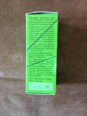 - Жена принимает настойку пчелиного от болей в суставах. Очень хорошо помогает и настойка восковой моли от застарелого бронхита. Отличные результаты.